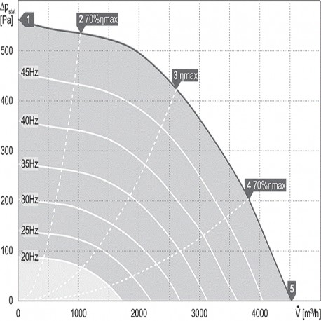 Wyważany dynamicznie wirnik typu B. Łopatki pochylone do tyłu wykonane z ocynkowanej galwanicznie blachy stalowej. Kształt łopatek zapewnia brak wrażliwości na osadzający się tłuszcz, który nie ma wpływu na parametry pracy wentylatora. Poza tym wirnik z łopatkami pochylonymi do tyłu ma wyższą sprawność niż wirniki z łopatkami pochylonymi do przodu o zbliżonych parametrach pracy. Dzięki temu pobór mocy jest mniejszy.