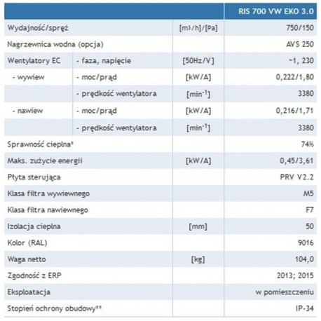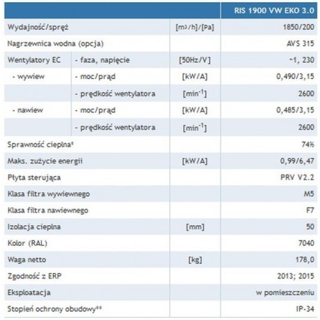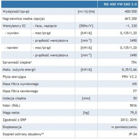 • Sprawność wymiennika ciepła: do 74%/75%/80%. ( w zależności od modelu)