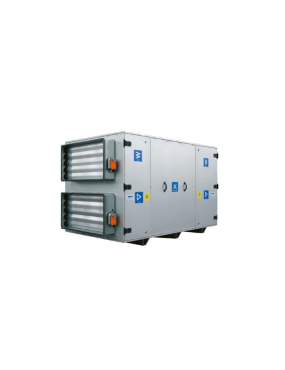 Centrala wentylacyjna z odzyskiem ciepła to nowoczesne urządzenie wentylacyjne zapewniające mechaniczną wymianę powietrza w pomieszczeniach z jednoczesnym jego filtrowaniem. Konstrukcja wymiennika płytowego umożliwia pozyskanie energii cieplnej z powietrza wywiewnego do ogrzania powietrza nawiewanego z zewnątrz. Centrale są przeznaczone do energooszczędnej wentylacji obiektów oraz montażu z przewodami wentylacyjnym o przekroju 600x350, 700x400 oraz 1000x500 mm.