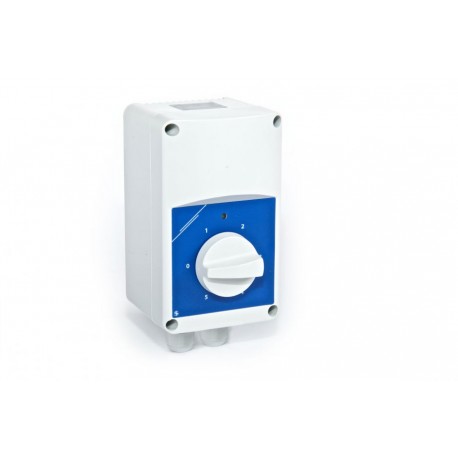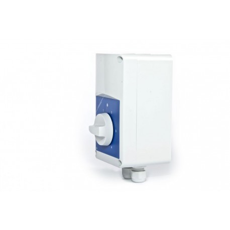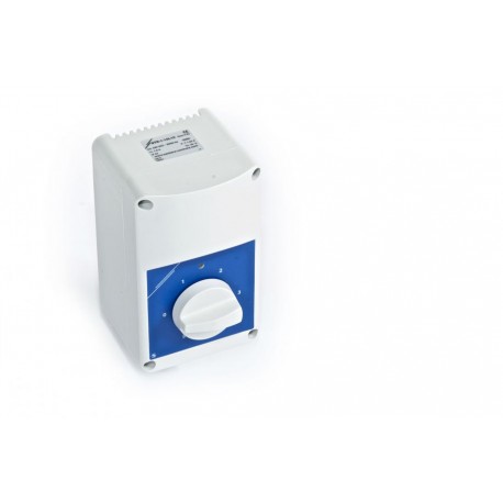 Transformatorowy regulator prędkości obrotowej do jednofazowych (230V, 50Hz) silników urządzeń rotacyjnych (wentylatory, pompy). Obudowa wykonana z odpornego na uderzenia i promieniowanie UV tworzywa ABS lub blachy stalowej w kolorze białym w kolorze białym (RAL 9002). Montaż natynkowy. Stopień ochrony: IP54. Pięciostopniowa regulacja za pomocą potencjometru. Dioda sygnalizująca podłączenie napięcia. Sugerowana współpraca z zabezpieczeniem termicznym typu S-ET 10.