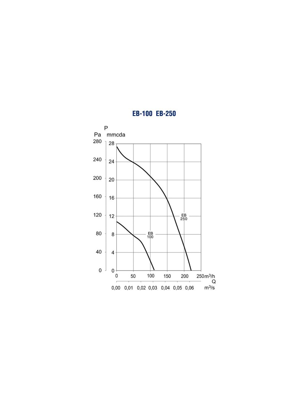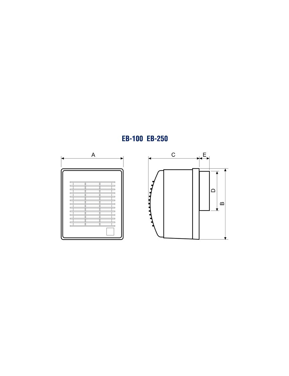 Wentylator łazienkowy EB produkowany przez Hiszpańską firmę S&P, przeznaczony jest do wentylacji małych i średnich pomieszczeń takich jak łazienki, WC, kuchnie, pomieszczenia mieszkane, biurowe oraz małych sklepów. Wentylator charakteryzuje się specyficzną budową, ma krótki króciec, a silnik wentylatora umieszczony jest całkowicie w obudowie frontowej. Umożliwia to montaż wentylatora w cienkich ściakach. Duże ciśnienie statyczne pozwala na osiągnięcie optymalnej wydajności w stosunkowo długich kanałach.