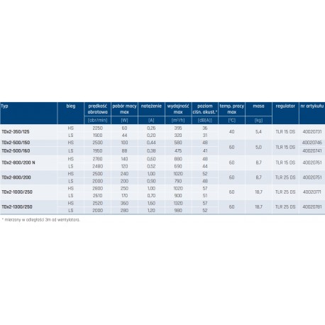 Dwustopniowe modele TDx2 składające się z dwóch jednostopniowych modułów TD na wspólnej ramie montażowej, w celu osiągnięcia prawie dwukrotnie wyższych ciśnień w porównaniu do modeli jednostopniowych, TDx2 są dostępne są w standardowych średnicach od 125 do 250.